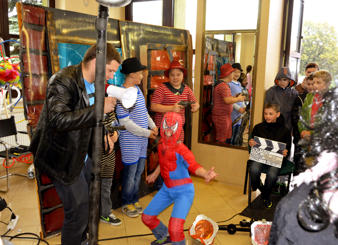 Festiwal rozpoczął się rano w poniedziałek. Do MCK SOKÓŁ przybyły rzesze przedszkolaków, uczniów sądeckich i podsądeckich szkół. Oni to stawiali swoje pierwsze kroki na planie filmu kryminalnego „Dark City”, przygotowanym tradycyjnie przez krakowską grupę Locomotora. Happeningowa akcja cieszyła się sporym powodzeniem. Z tubą na aktorów i statystów pokrzykiwał pan reżyser. Były kostiumy, ciekawe rekwizyty, charakteryzacje, dekoracje i malowanie twarzy. Z kamerą pojawił się pan operator (Wiesław Żygłowicz z MCK).