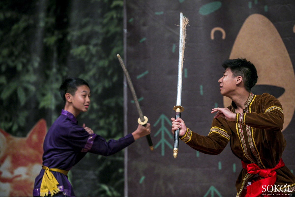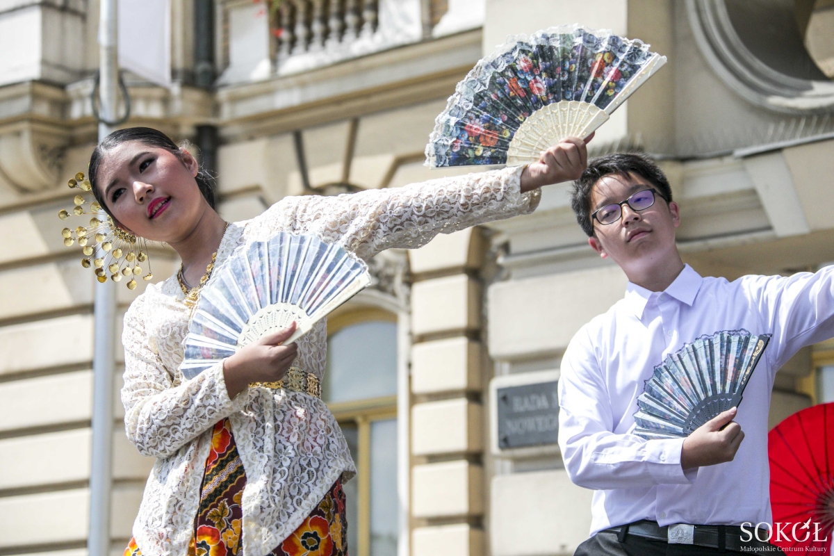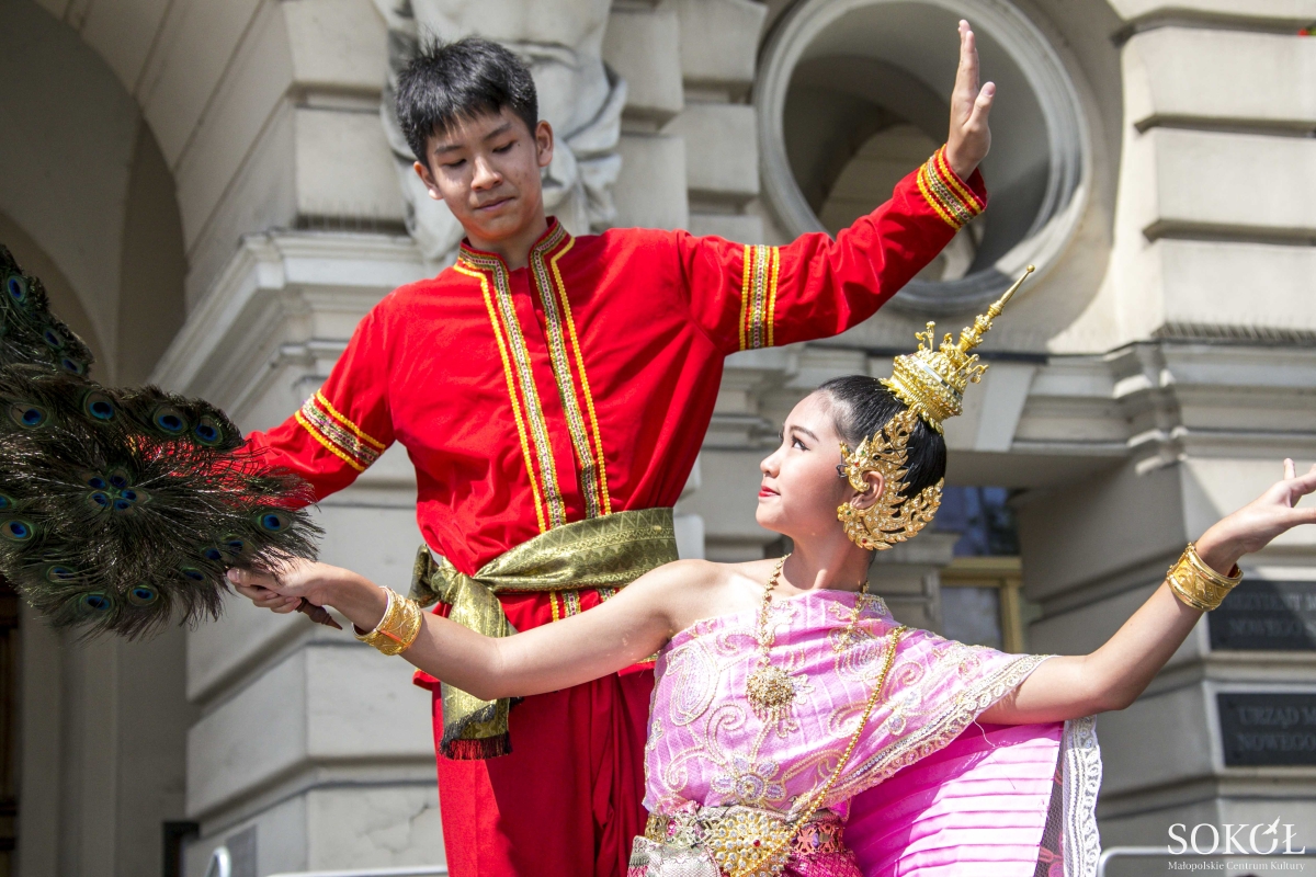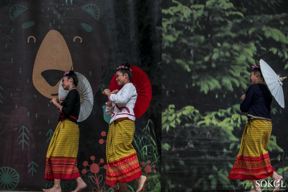 Zaczyna się od parasolek, wdzięcznego tańca trzech uroczych Tajlandek. A gdy dziewczęta z parasolkami stają się tłem, na scenie toczy się rozmowa dwóch wachlarzy z pawich piór, rozmowa bez słów, między dziewczyną a chłopakiem. Zastukały drewniane miseczki w ośmiu dłoniach. A po chwili znów dwie pary, znów z wachlarzami, tym razem tradycyjnymi.