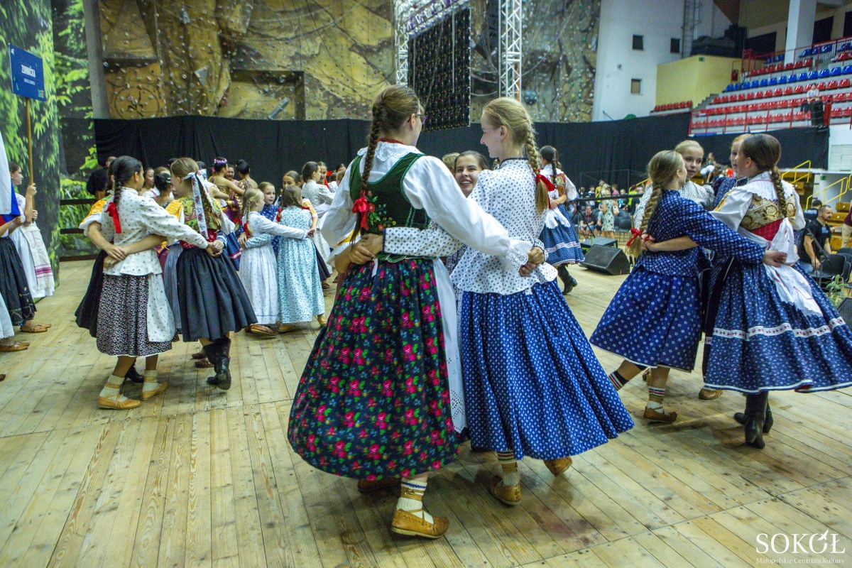 I znów Słowacy! Zabawy dziewcząt. Wyliczanka, która dziewczyna pierwsza ruszy do tańca, podrywając po kolei kolejne. A potem coś bliskiego, śpiew o nóżkach zająca, którymi przebierałaby każda z nich, gdyby je miała. Śpiew słowacki, dziewczęcy, czysty, wypełnia salę i dusze. I gdy krąg wiruje coraz szybciej, włącza się znów kapela.