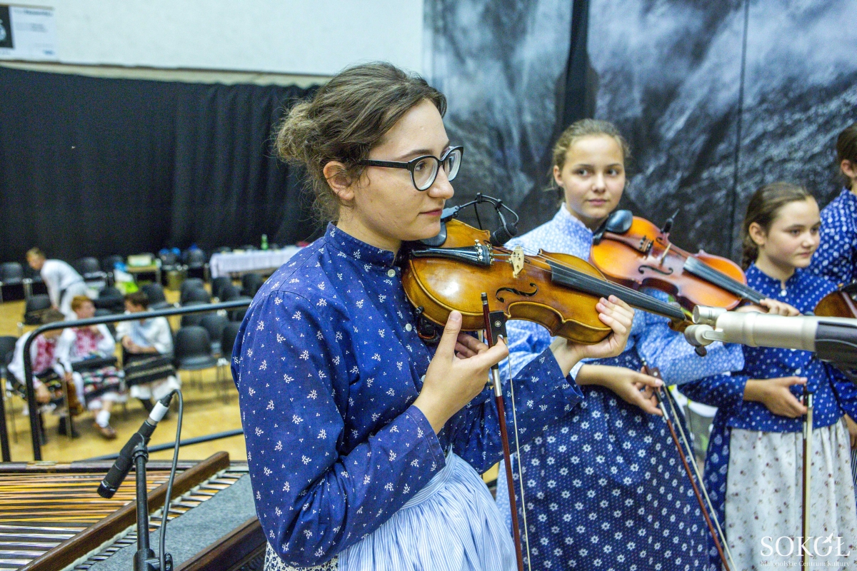 I chwila wytchnienia dla patrzących, ale uszy nie odpoczywają. Popis kwintetu smyczkowego i cymbałów sprawia, że nogi same przytupują i dłonie składają się do oklasków. Kolejny skrzypek, ubrany nieco inaczej, tak bardziej po miastowemu. „Zagaduje” kapelę, która nie czeka długo. W rytmie jego muzyk i muzyki kapeli, wchodzi para: znów skrzypek, z dziewczyną. Drugi zagrał, więc pierwszy porwał dziewczynę do tańca, ale drugi przecież z nią przyszedł, odłożył skrzypce i odbił dziewczynę. Potem pierwszy, potem znów drugi. W końcu jakby nie zauważyli, że dziewczyna uciekła, i poszli w jakiś pojedynek. A pojedynek taneczny nie jest na śmierć i życie, prowadzi do przyjaźni, jedności i zgody, gdzie już bez podchodów tańczą z panną, która najwyraźniej dala im drugą szansę, raz jeden, raz drugi.