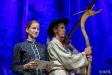 Pięknie sobie to umyśliły. Na pasterskie zawołanie ze sceny, druga odpowiada z trybun. Fantastyczne wyjście poza przestrzeń sceny i nagle się okazało, że i my, na trybunach, możemy być częścią tej hali, tego pastwiska. A z prawej lata gałganek między chłopakami w płóciennych portkach, koszulach i czarnych kapeluszach z czerwonym sznurkiem.