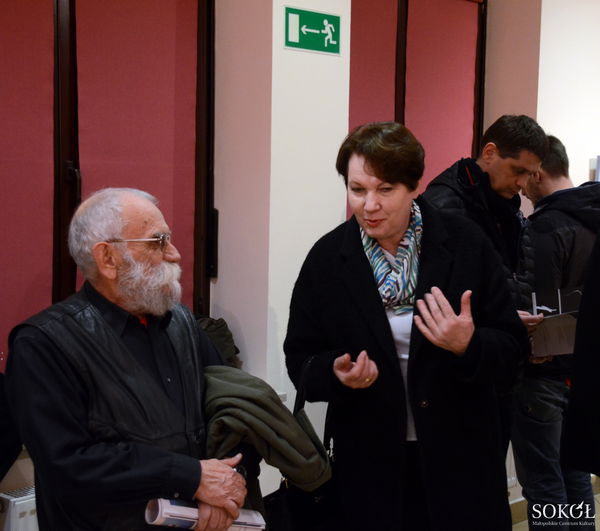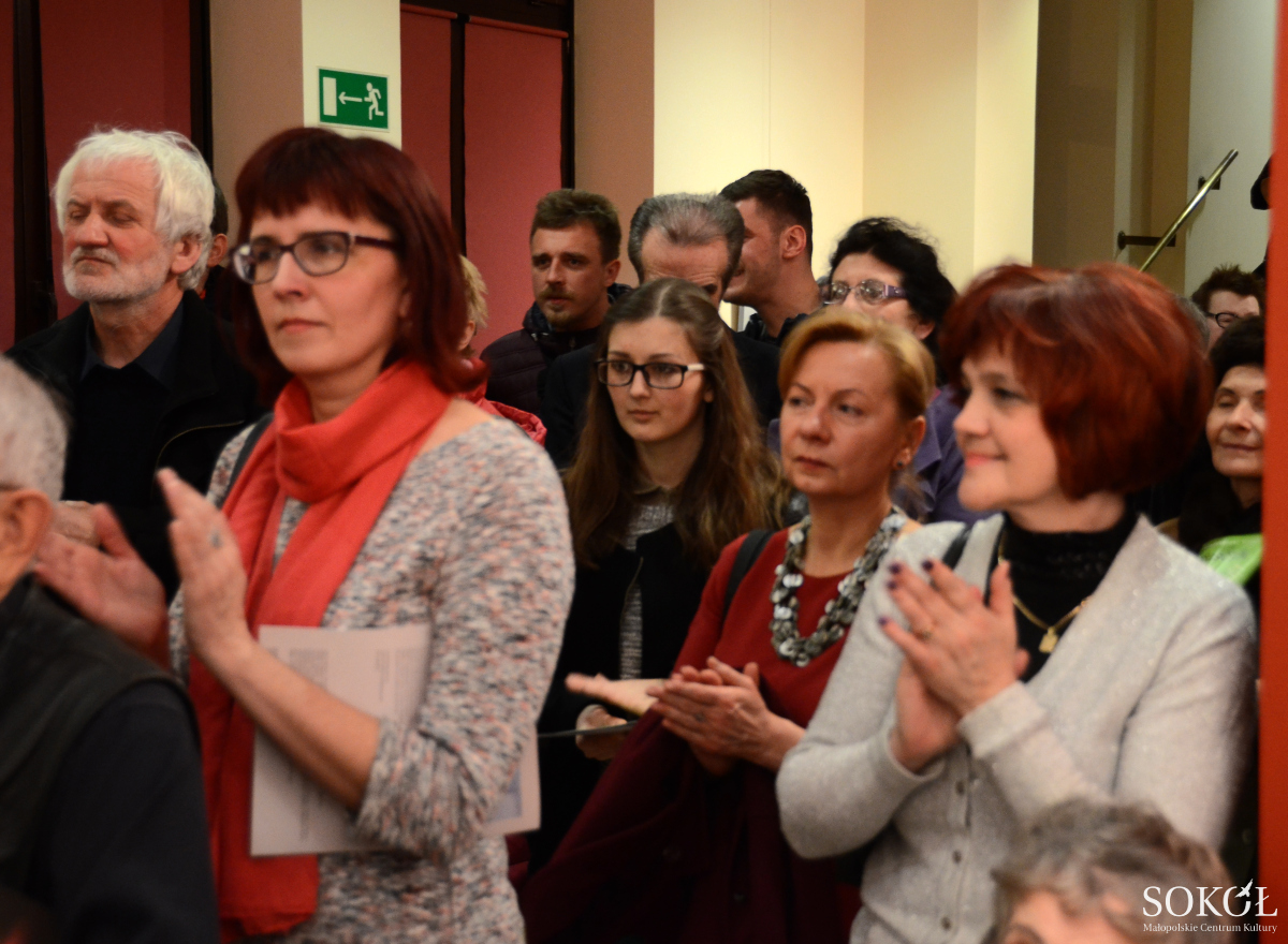 Wernisaż wystawy zgromadził wielu miłośników sztuki, bliskich i przyjaciół obu pań. Wszystkich powitał serdecznie dyrektor Małopolskiego Centrum Kultury SOKÓŁ Antoni Malczak. „Autorki: Barbara Hubert i Aleksandra Anzel własne rozważania artystyczne podporządkowują myśli - katalizatorowi tworzenia. Tła myśli - prezentacja wybranych dokonań artystek zabiera nas w podróż po światach wykreowanych ekspresyjno-analityczną twórczością, określoną różnorodnymi formami wypowiedzi. Zaprezentowane dzieła nie poddają się tematycznemu rygorowi, zostały zebrane w zbiór tworzący szeroki wachlarz wizualnej prezentacji zainteresowań, przeżyć, pomysłów, których wyrazem jest tytularna myśl, a efektem przedstawiane obrazy i zdjęcia” – napisał w starannie zaprojektowanym i wydanym katalogu Sebastian Łańcucki.